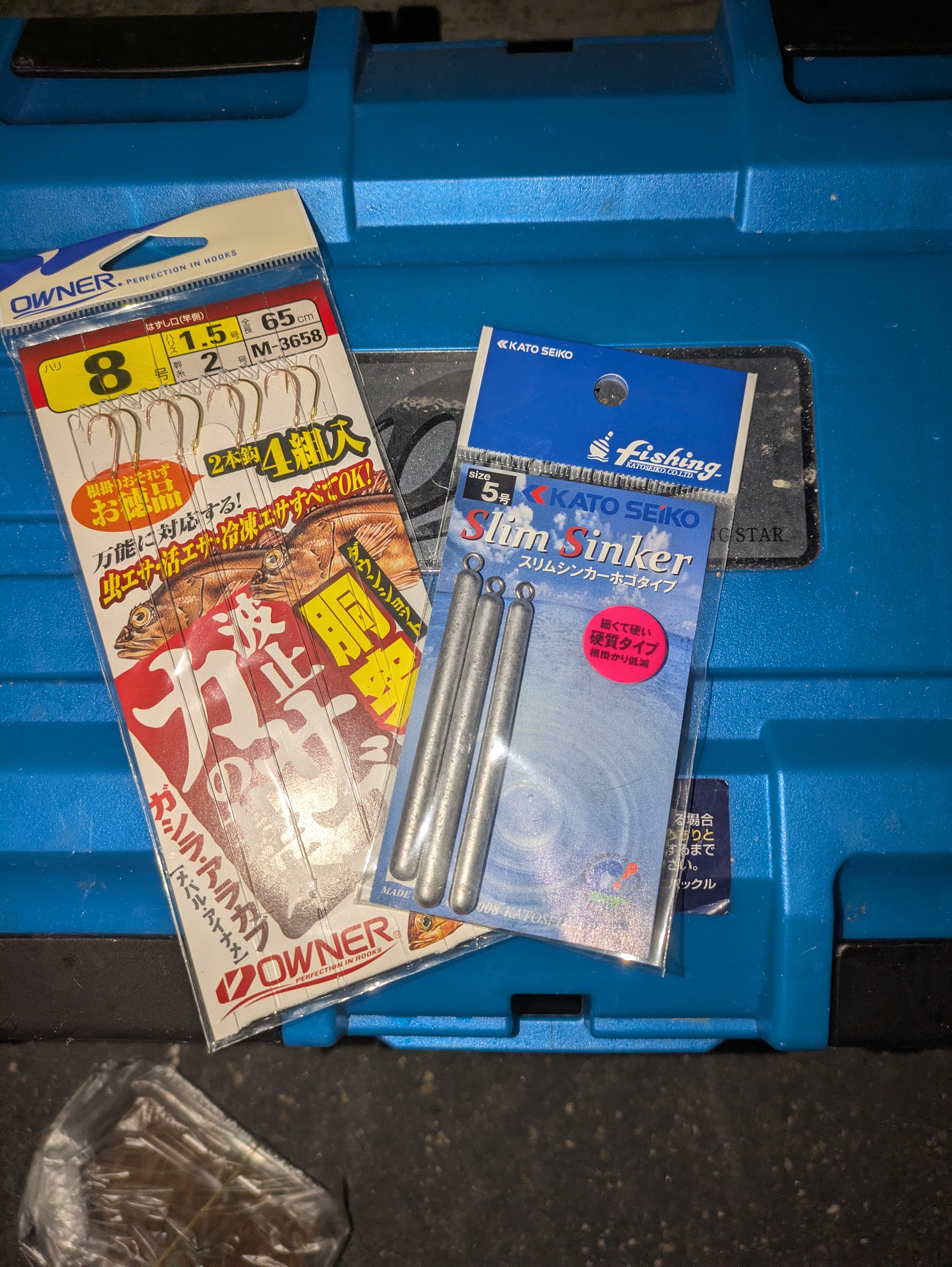 手軽にできる胴付き仕掛けで近場漁港へ行ってきました!今回はこの仕掛け!オーナー様の胴付き波止カサゴの基本8号とオモリ5号にアオイソメを使って魚に遊んで貰いました!軽く投げてから底をしっかり取りながらズルズルやって探るとコッとひったくるアタリ!堤防や漁港の定番魚種のカサゴがヒットします。仕掛けを立て気味にして中層気味に探るとセイゴも釣れました。この魚達どちらも口の大きな魚なので喉の奥まで掛かることもありますので、針外しがあるとオススメです。寒くなってきても魚は高活性でした!近場でとりあえず釣りを楽しみたい方には是非!挑戦してみてください。