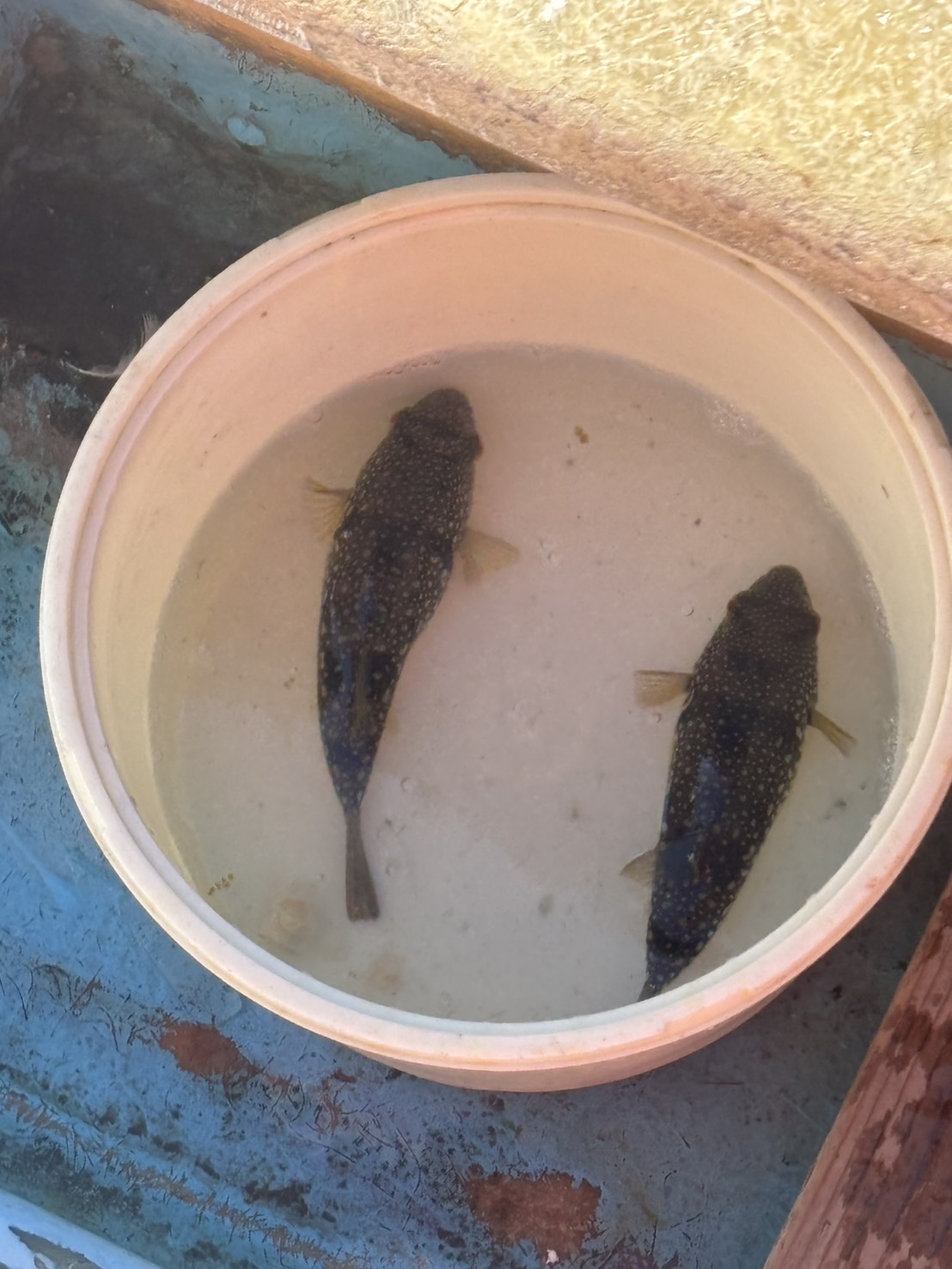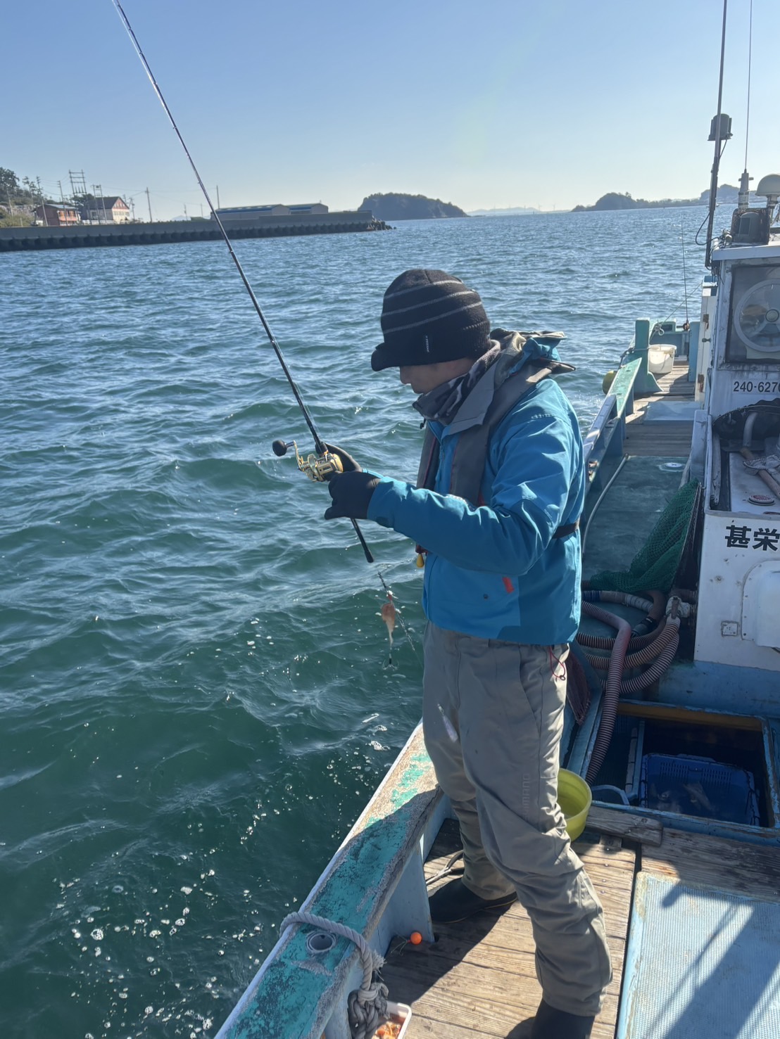 フィッシング遊メンバーで日間賀島の甚栄丸さんにお世話になりカットウ釣りに行ってきました!12人にいたので6人ずつで2隻に分かれました!片名港からポイントまでは5分ぐらい!船長の合図とともにスタート!そうすると周りのメンバーはボコボコ釣り上げています!私はというと、野村チーフと同じダイワさんの極鋭カットウフグHH159を新調したのですが感覚が掴めず苦戦。野村チーフはボコボコ釣っているのでいい竿であることは間違いありません。ようやく竿になれるとアタリがビンビン伝わってきます!これはスゴイ!!そこからはアタリを拾い連発!みんなでお祭騒ぎです!!その後もアタリ連発のポイントばかりで終わってみれば最終、船中で100匹越えの釣果となり全員大満足の釣果となりました!今回使用した仕掛けはヤマワ産業さんのカットウライトフグシングルアームとカットウ仕掛けダイレクトの2種類。オモリは30号。根掛かりは多いので5個は用意していただいた方がいいと思います。エサのアオヤギは今回3パックでギリギリでした!釣って楽しい、食べて美味しいカットウフグいかがでしょうか?甚栄丸さんオススメです!そして今回ひだまりチョモランマを購入して着用してみました。キンキンに冷えた早朝の着替えでチョモランマだけになってみましたが寒くありませんでした。いかがでしょうか?