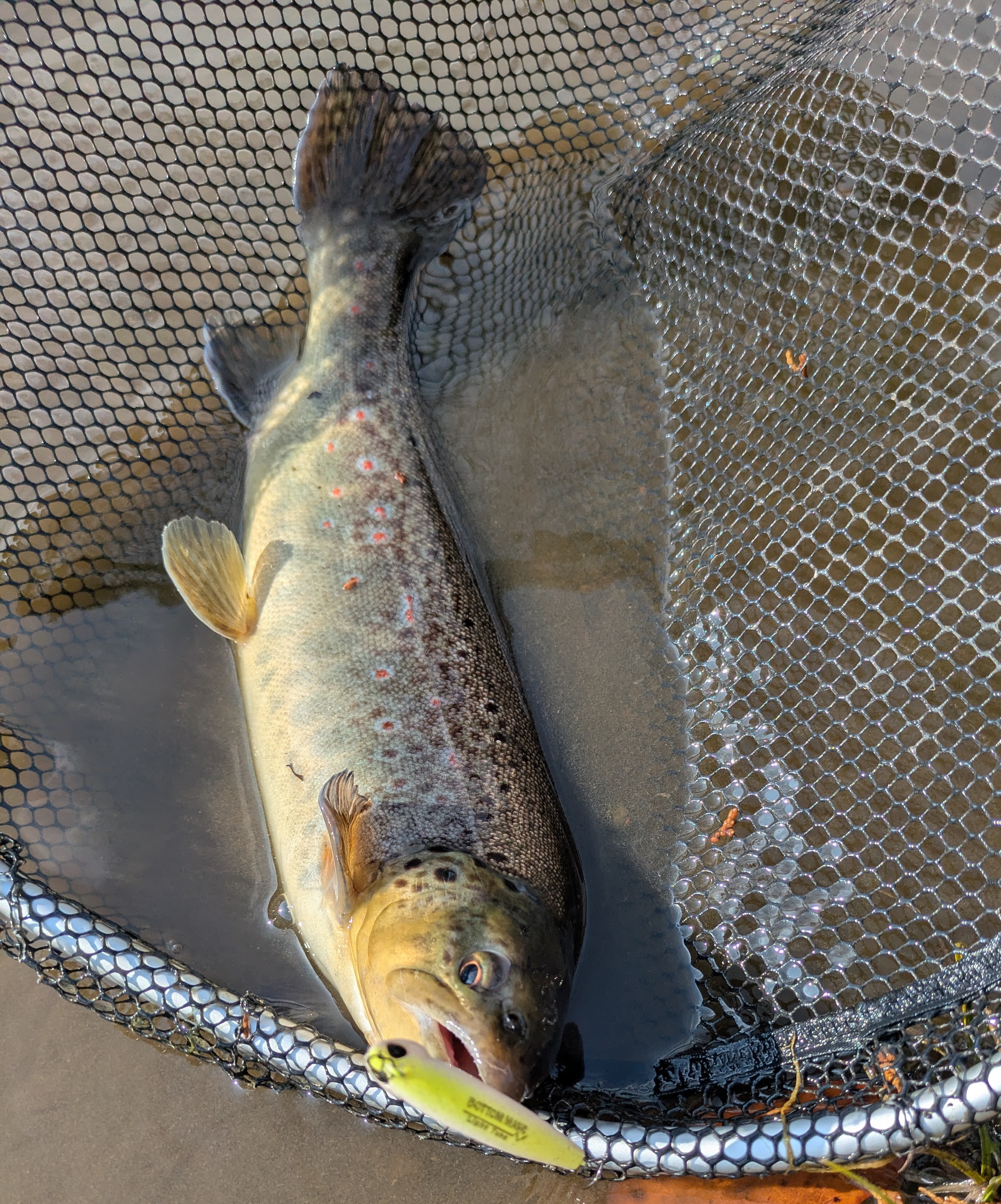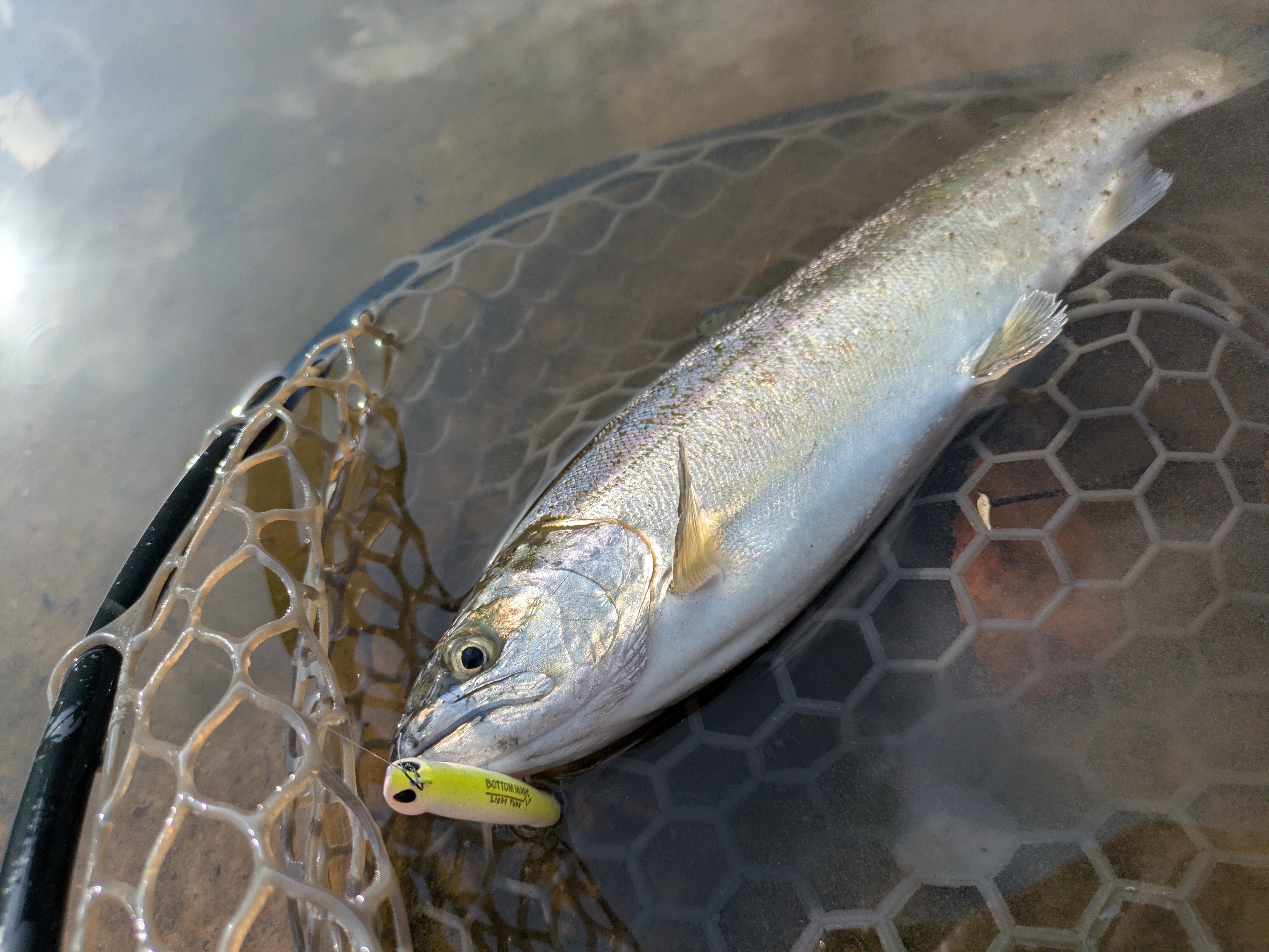 ちょっとスロー気味に誘ってステイ1秒でゆっくり誘うと良型ブラウンとサクラマスをキャッチできました。