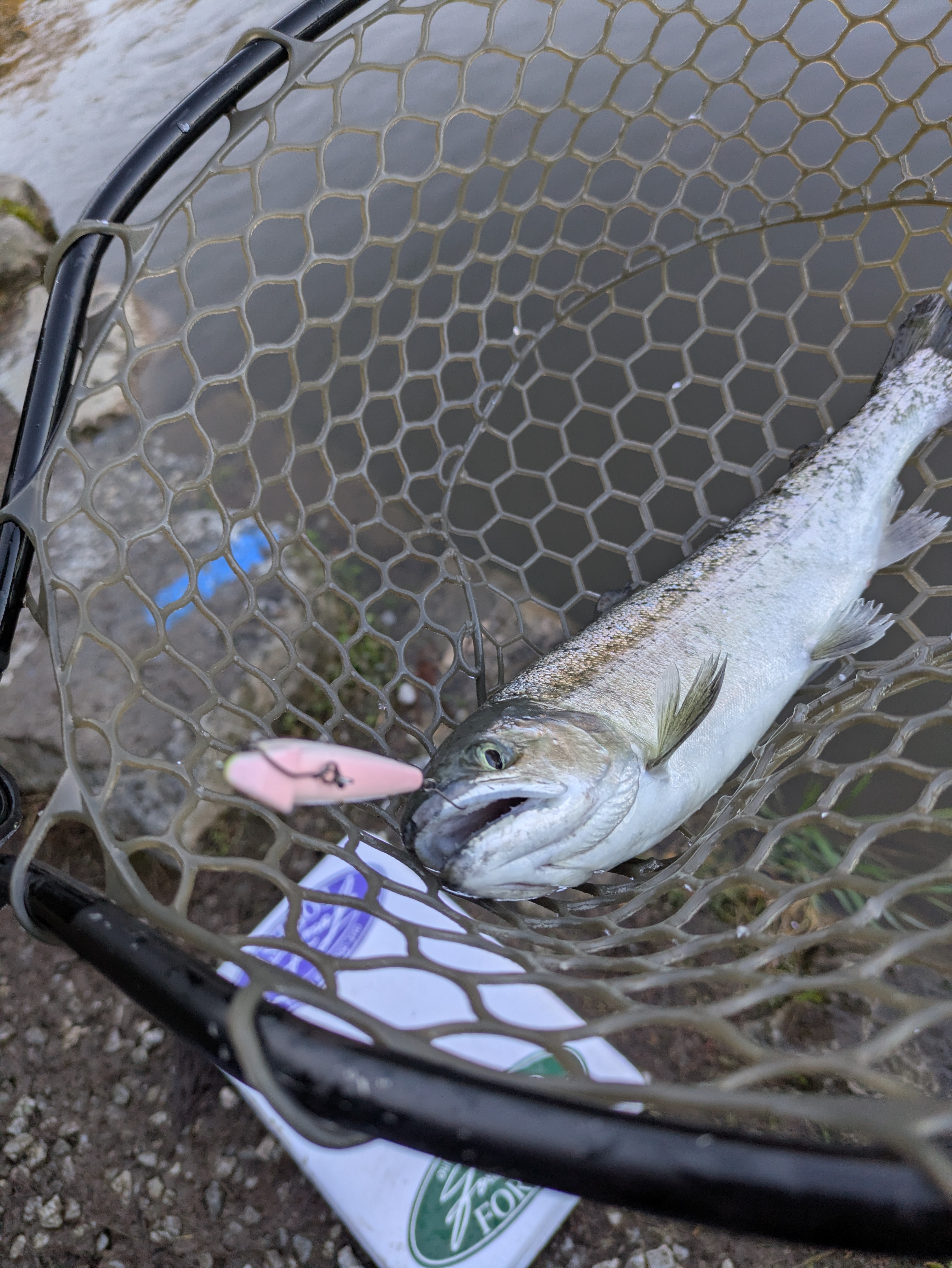 マスのたまり場ではプチモカとちびパニのSR-SSを巻き下げくらいスピードで巻いてくると素直に入るアタリで連発しました。(次の日の山側)魚が浮いていたのでスプラッシュトップとノリーズさんのウィーパーで午後券75キャッチオーバーでした。