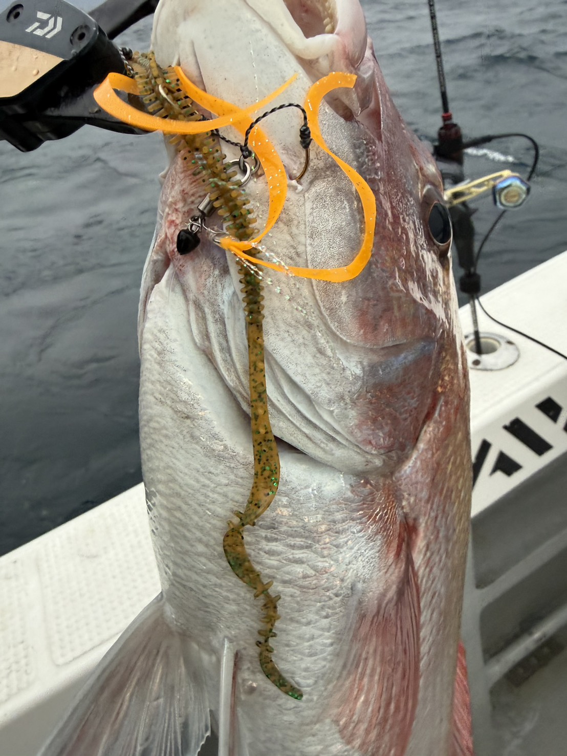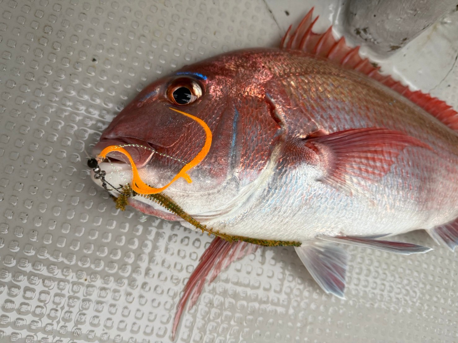 日本海の春と言ったらディープタイラバ!今回は福井県敦賀市出船の「一美丸」さんに行ってきました。春は「ホタルイカパターン」。朝4時半頃出船。ポイントまでは1時間ほどで水深120m。風が強く船が流れるのが速くタイラバはタングステンの250gでスタート。ホタルイカを意識して「海毛虫カーリーロング」の「シラス星」。ボトムに着いたら10m程上がるようにとにかくただ巻き。巻いて巻いて… 朝マズメの良い時間にはアタリもなく…ワームのカラーを「茶バチ」に交換してしばらくすると、トモの方がヒットしたタイミングで自分にもヒットし、1匹目なので時間をかけ慎重にやり取りして上がってきたのは、サイズは大きくありませんでしたが綺麗なマダイ♬ホタルイカパターンのワームカラーではなく地味な「茶バチ」でのヒットでした。終盤にもヒットしましたが、まさかの根ズレでラインブレイク… どうやら水温が前日より2℃下がっていたみたいで、活性が一気に落ちたみたいでした… まだまだこれから面白くなる日本海のホタルイカパターン!80cmクラスも上がってくると思うのでこれからに期待です!!