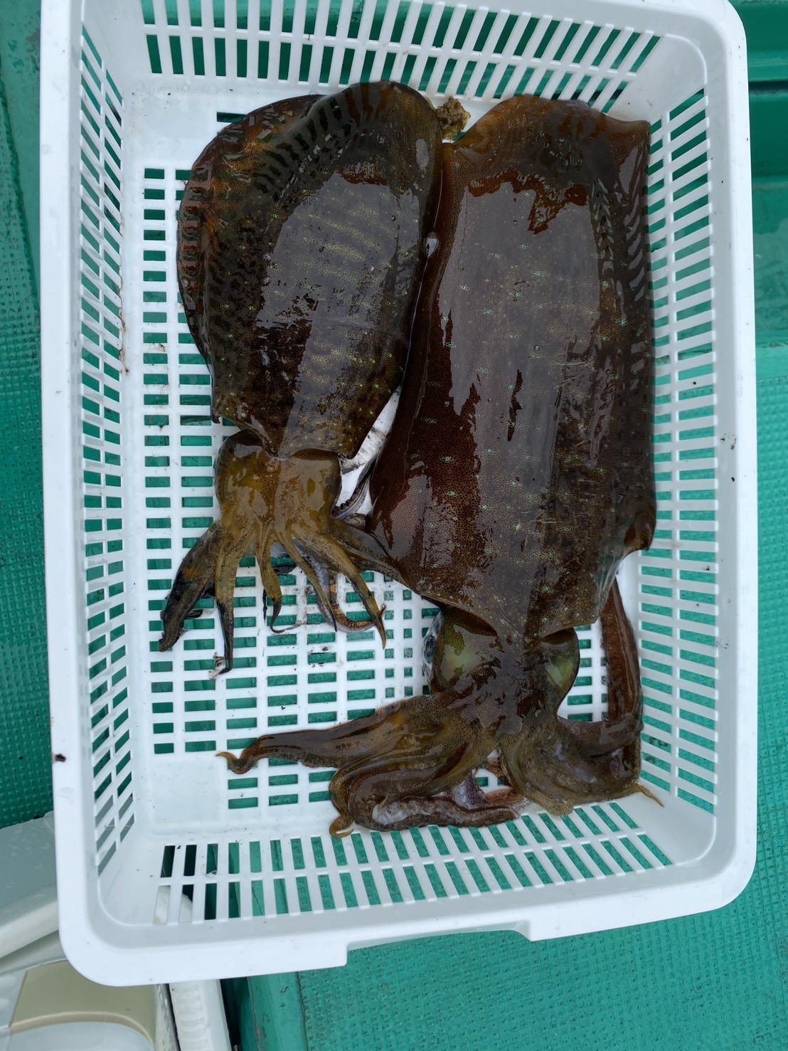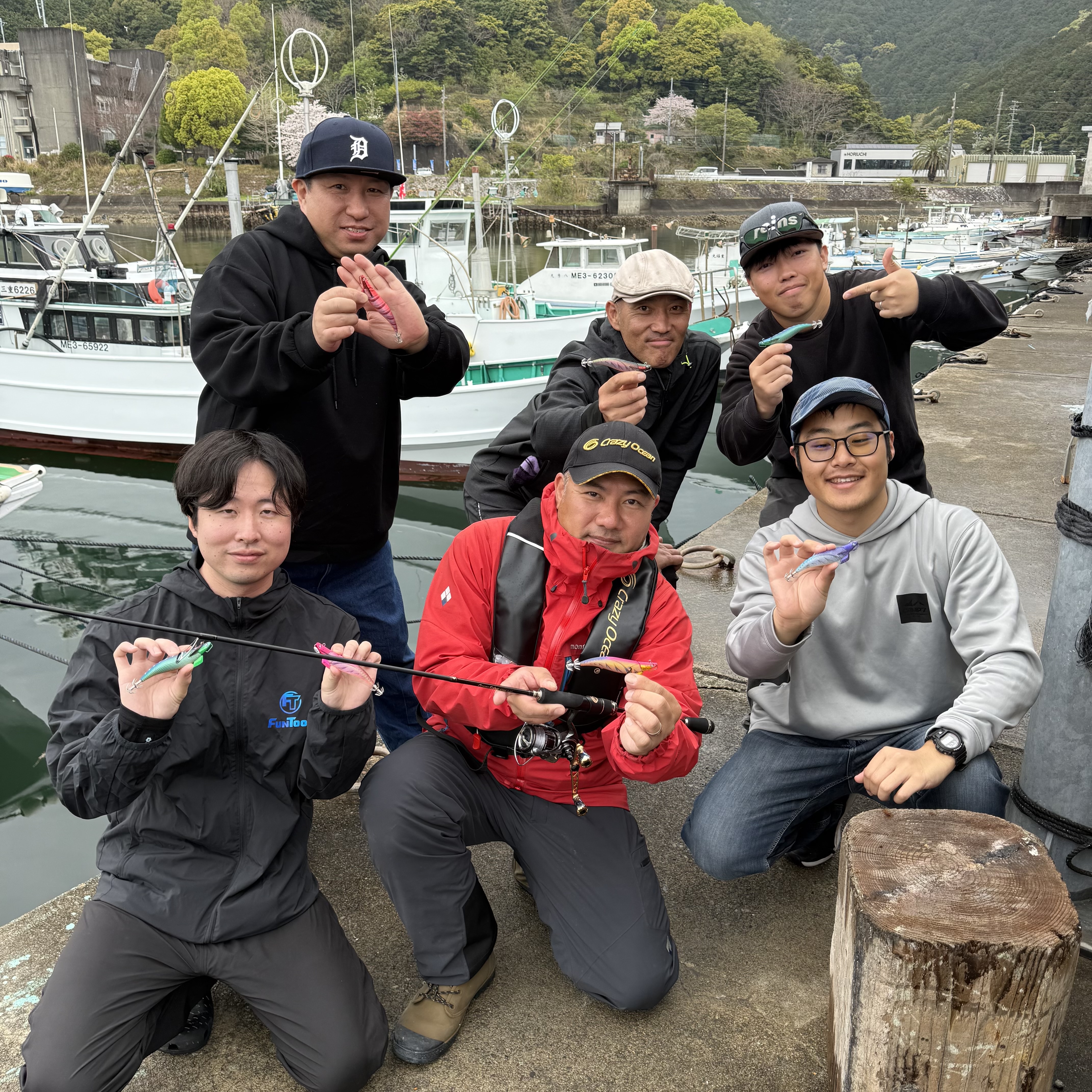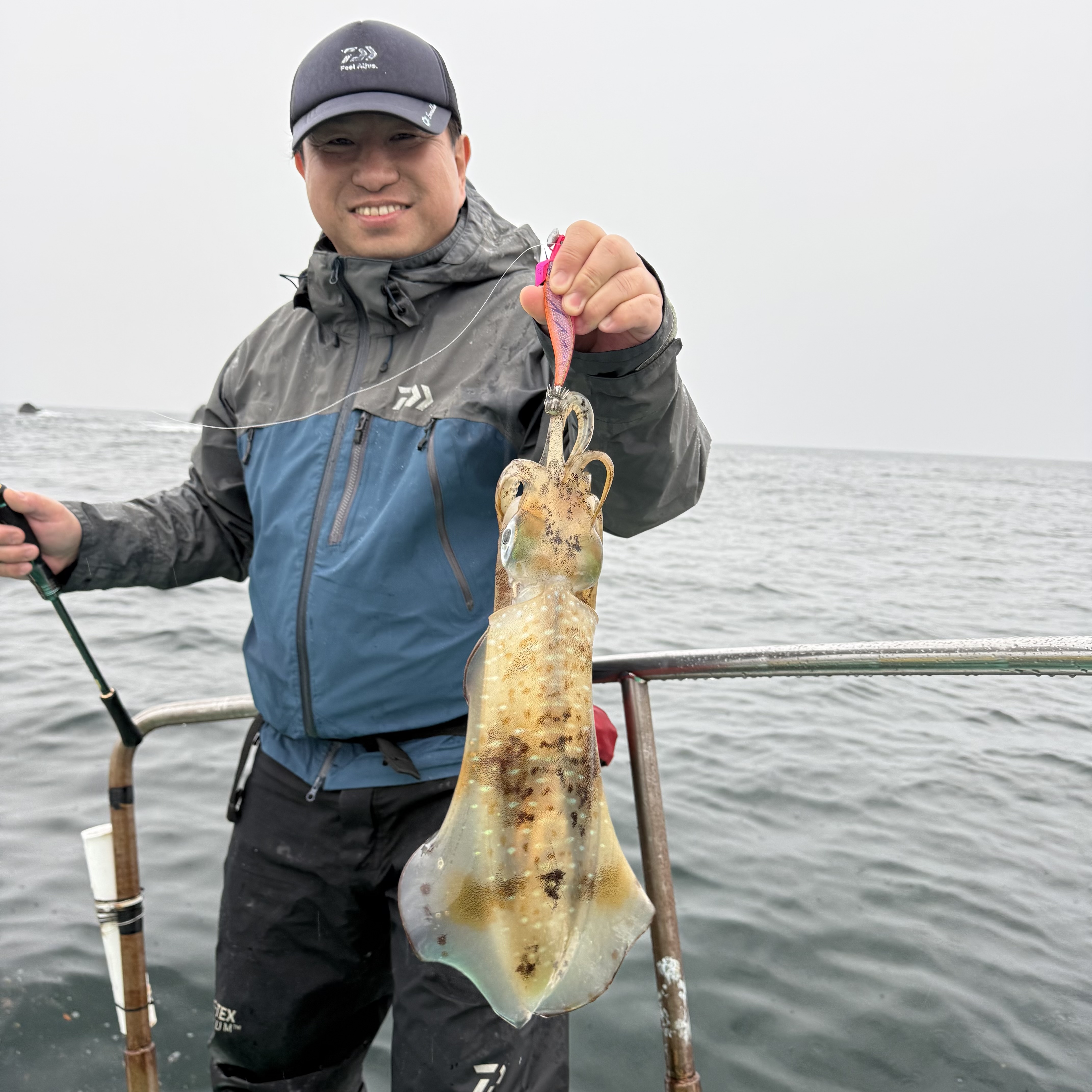 今回の釣りクラブは紀伊長島の勝美丸さんにお世話になりオフショアエギングに行ってきました!当日の天気は小雨が降って、少しのウネリと濁りの中の釣行でしたが、クレイジーオーシャン新製品!キャストランナーを使ってアオリイカを狙ってみました!!キャストランナーの事前情報はキャストしてからラインを張らず緩めずで底を取って3~5回ほどシャクって落としなおして着底後少しステイ!手前まで何回か繰り返していると当たりを取らずともステイ中にイカが乗ってくる!との事だった様な!?とりあえず実釣開始!!水深は10m前後だったので、まずはシンカーを付けずにノーマルのままスタート!何回かキャストしてみるもウネリでエギが引っ張られる・・・少し底が取りにくかったのでシンカーハンガーに割ビシの特大を付けて再スタート!(フォールスピードの調整が簡単なので非常に助かります。)キャストしてから20秒ほどで底に着底、張らず緩めずを意識しながら2回目までは3回シャクって6秒待ちで3回目のシャクリに2回シャクって5秒で着底からの3秒ほどステイを入れてみたら次の聞き合わせで重みが乗りました!!合わせを入れるとグイグイとイカの引き!!上がって来たのは1080gの良型アオリイカでした!イメージ通りに喰わせる事ができたので非常に嬉しい1パイとなりました。その後しばらくしてから同じパターンで500gぐらいのアオリイカを追加し、同船者もポツポツ釣り上げていましたが水温低下の影響もあり船中5ハイの釣果で終了しました。春イカはこれからなので是非チャレンジしてみて下さい。