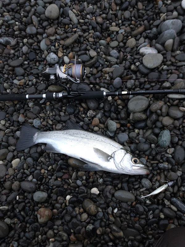 表層ボイルがあり、人も入って周りが巻きの釣りでショートバイト多い中、食わせを意識してダートからの波打ち際ただ巻きで、狙い通りしっかり食ってきました!