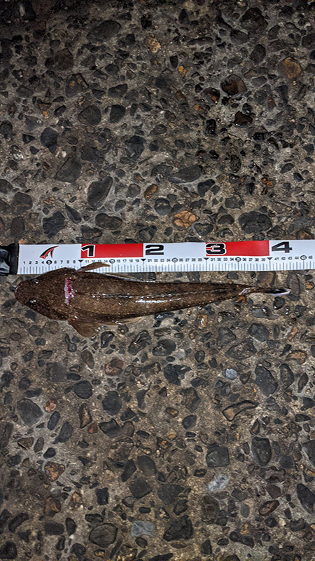 久しぶりの投釣り。 上げ潮狙いで、150m程度投げ、磯竿で電気釣り。 投げ竿の穂先が、ツンツンと入りよく食わせ合わせると42Cmシーバス。 その後、流れがあるのにオモリが動かないので、合わせると43cmマゴチ。 明るくなり納竿。