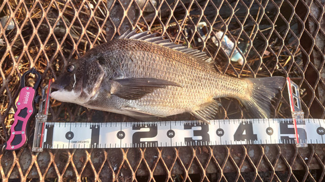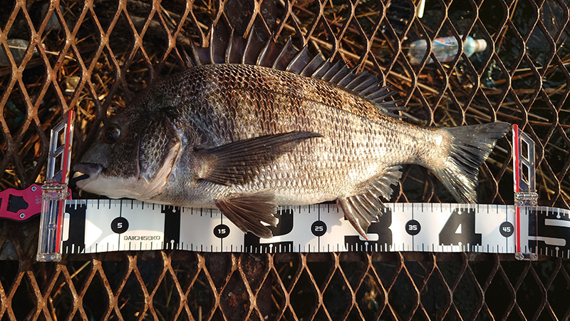 上げ潮でボラをかわしながらの1尾! 43.5~50cmまで数釣りも楽しめました。
