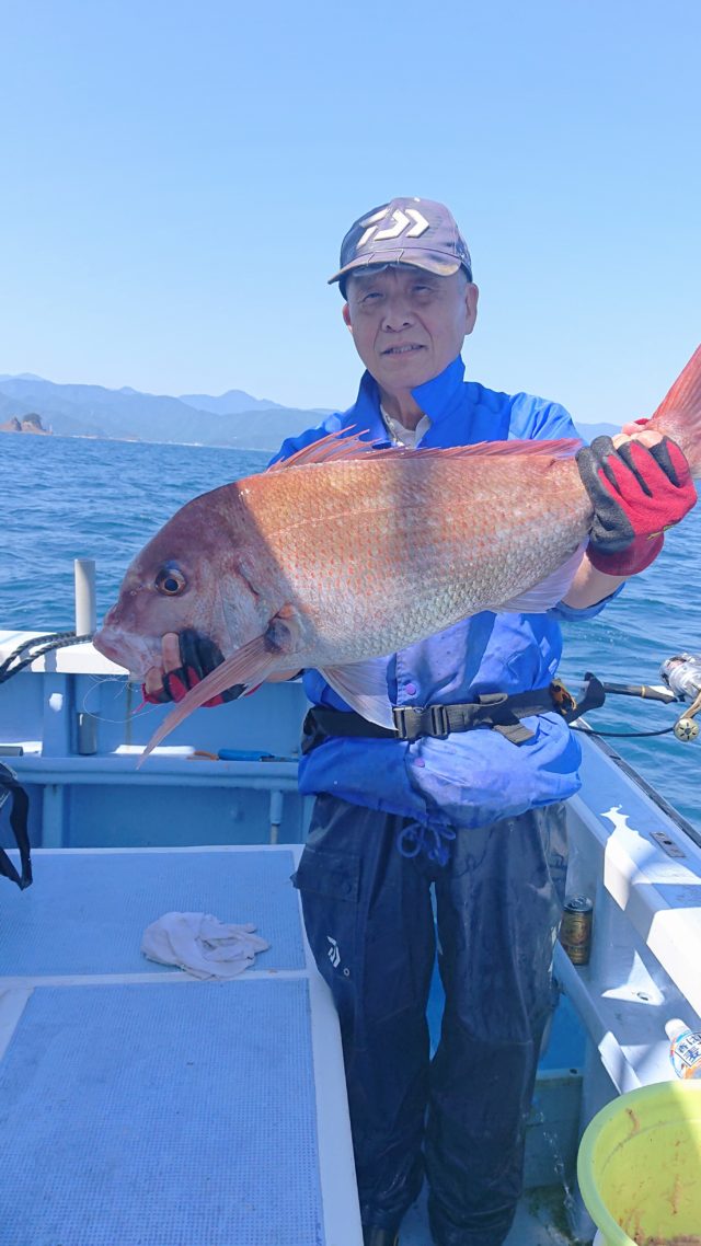 朝イチ浅目のポイントでバリっとイサキをゲットして、真鯛のポイントで塩焼きサイズから食べ頃サイズをぽつぽつ拾って、最後にドカンと75cmのBIG真鯛をゲットして皆さん良い釣果に恵まれました(^○^)