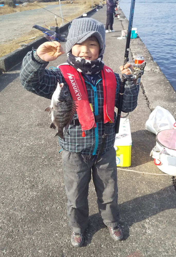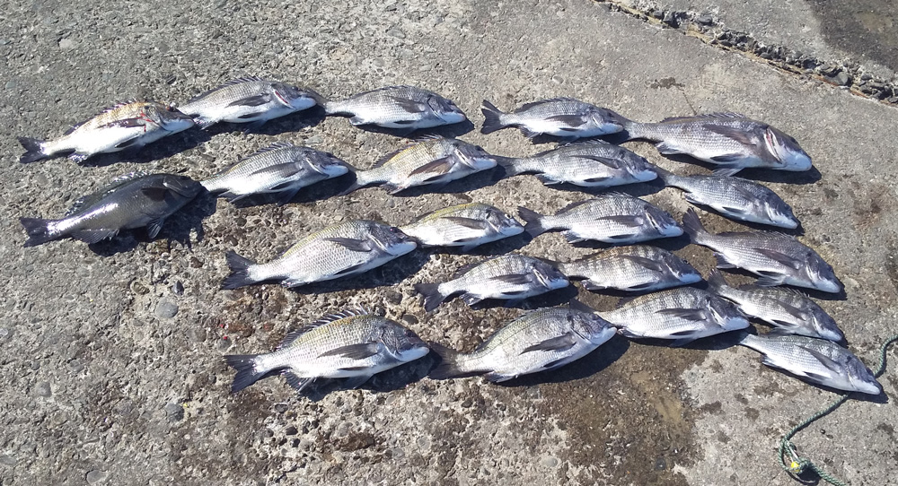 中学生の長男が8枚、小学校二年生の次男も1枚チヌが釣れ全員安打と、なりました。