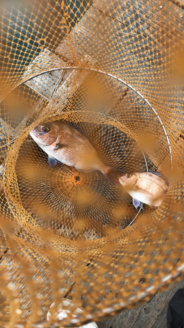 本命のチヌは釣れず、鯛2枚で納竿 朝一いい感じで竿絞る魚を掛けましたが、糸を切られてサヨナラでした エサ オキアミ ライン 2号