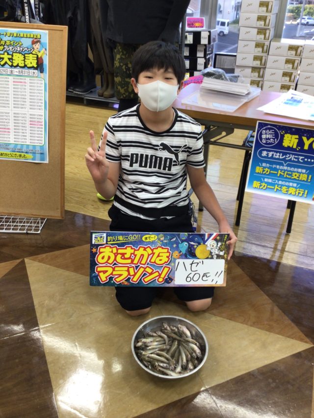 本日、おさなマラソンにて、かいと君、ハゼの釣果をお持ち頂けました!豊川放水路の河口にて良型のハゼを60匹の釣果です!今全体的に釣れているサイズより大きなハゼが揃っていました!