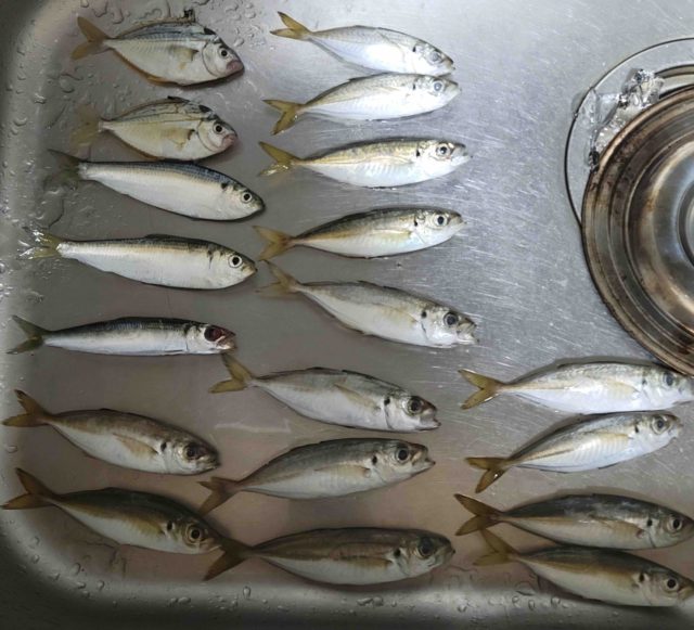 やっすいエギングロッドとやっすいシマノのリール。 22時~サビキ開始でアジ4尾でパッタリ。周りも釣れてないのと、強い雨のため、朝方まで休憩。4時~開始で7時くらいにまたパッタリ。 キス仕掛けに替えて、ちょっと投げたら ヒイラギが。ちょいちょい休憩いれながら夕方~サビキで19時終了。