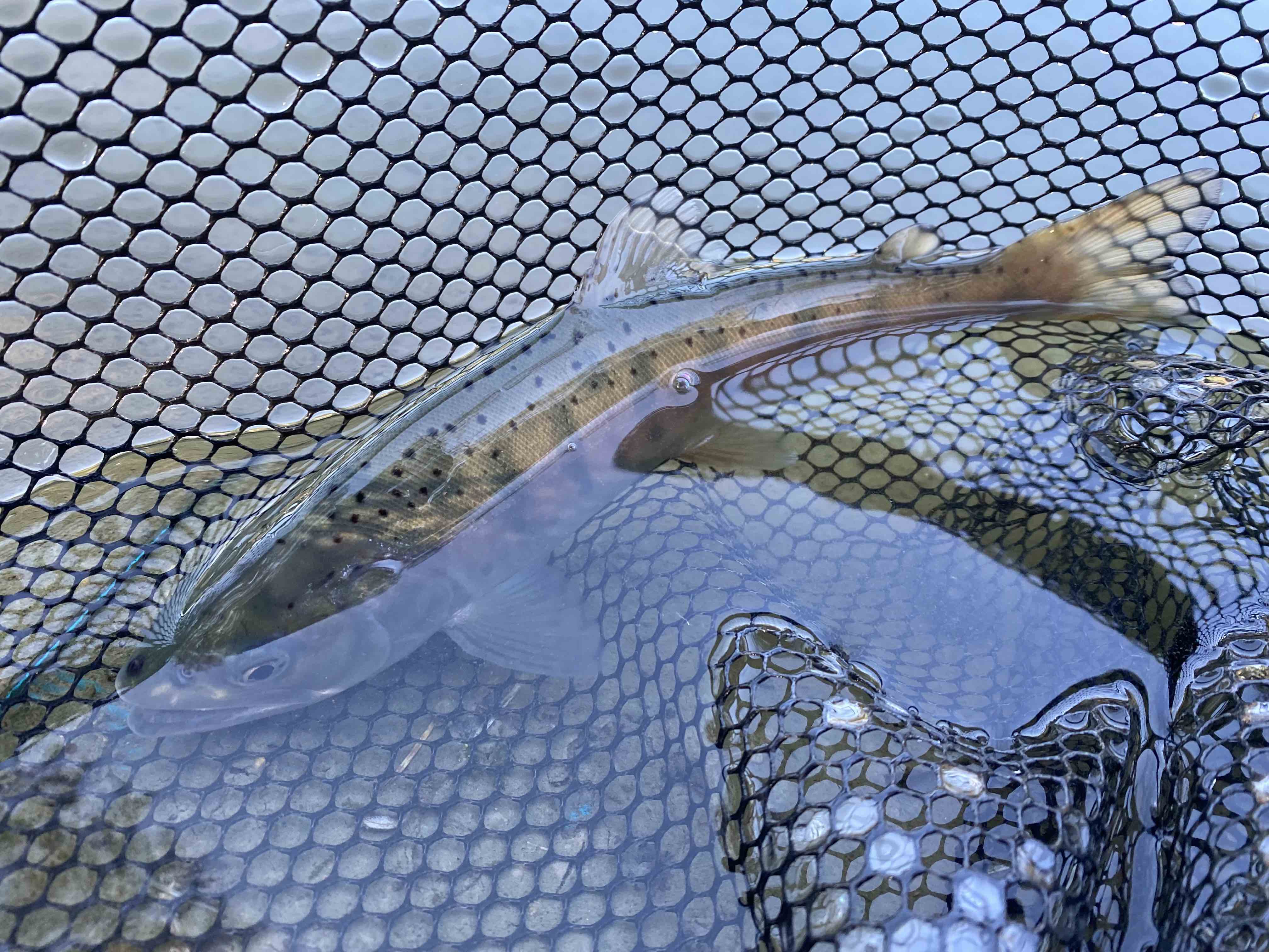 初のニレ池にお邪魔してきました。聞いていた通り魚はそこまで大きくないわりによく走り楽しませてくれた。ロックサーモン狙いでしたが嬉しいゲストとしてヤマメ、サクラマスがアタックしてくれた。しかしフライのリーダーに結んでた糸が0.6号だと思っていたら0.3号で経年劣化に気づかずバラしにバラし、かけた大物を取ることが出来ず課題が残る結果になりました。次行く時は対小マスも万全し大物リベンジします。