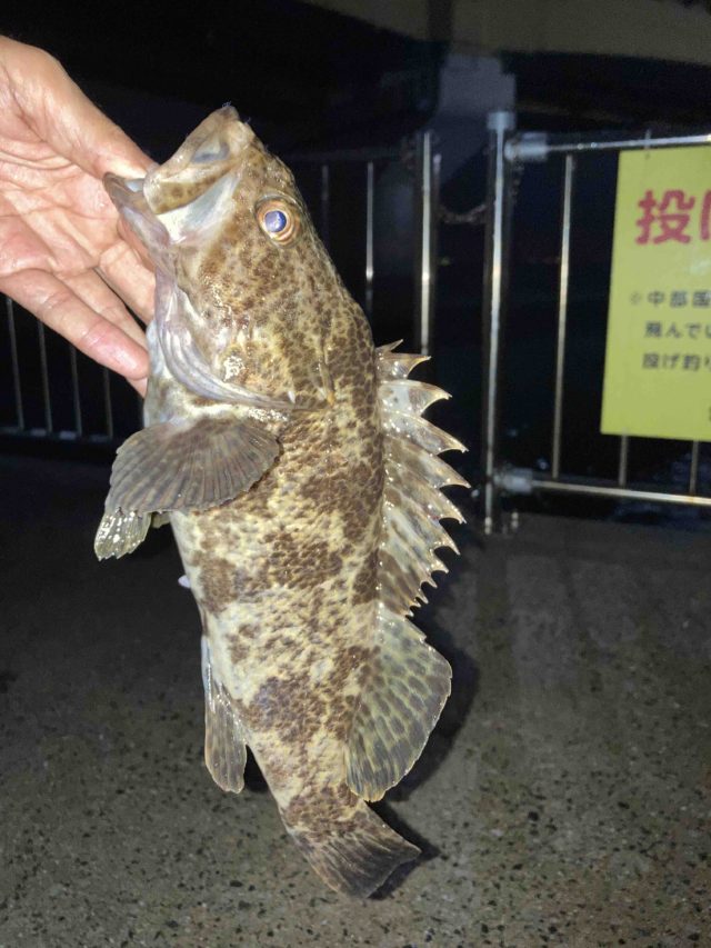 小雨の中のナイター。満潮から下げ始めのタイミングでタケノコメバル33センチ。