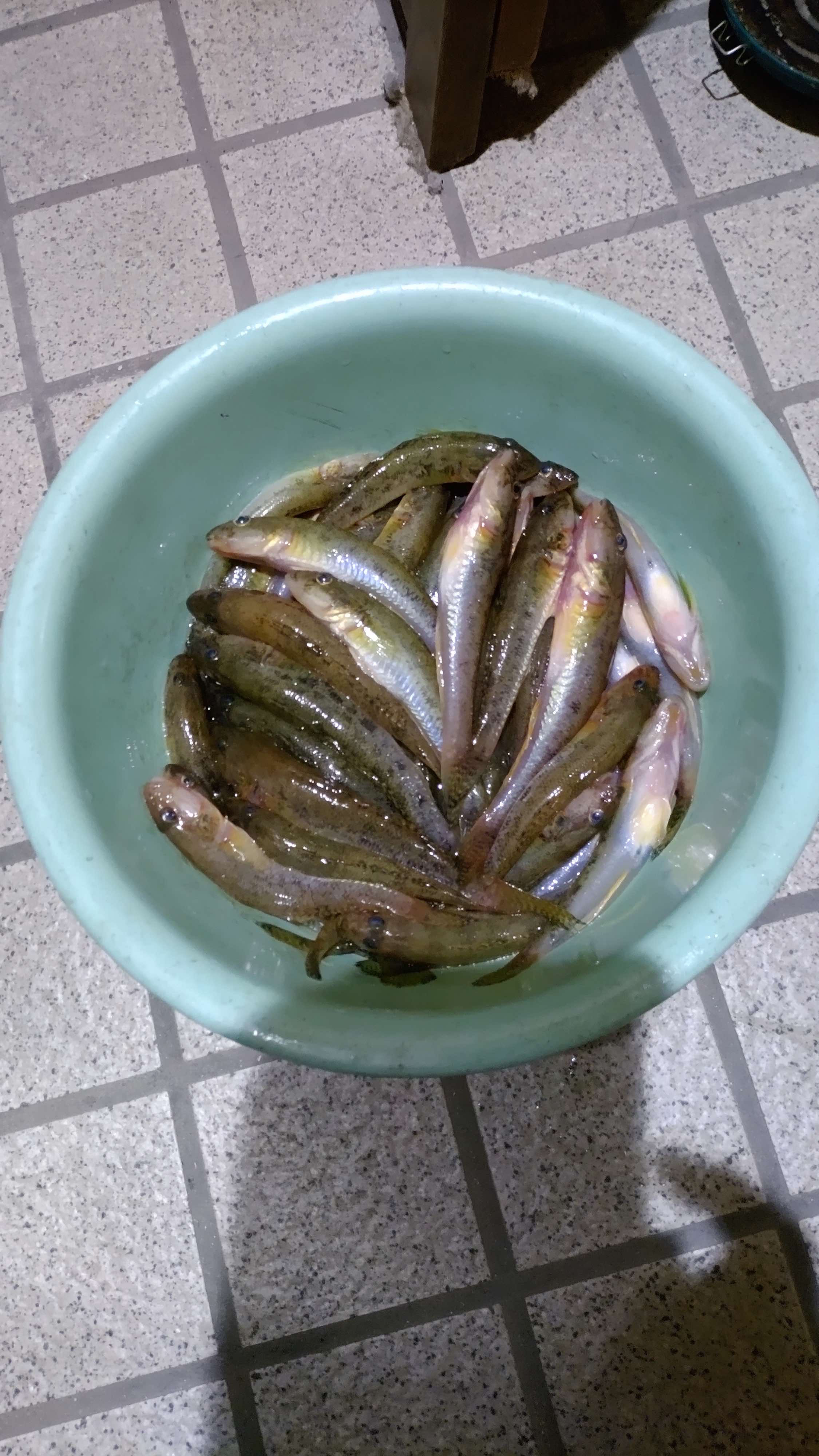 ・竿 渓流竿4.5m ・道糸2号→ハリス1号(樽型ハリス止) ・袖針6号又はハゼ針6号 ・オモリ釣鐘型1号(遊動式) ・エサ 青イソメ小 ・中潮 12:57干潮→18:39満潮 ・実釣時間 13:20~15:50 ・24日にも38匹釣れた場所に残りのエサで再度アタック。型が揃いまだまだ釣れますね。
