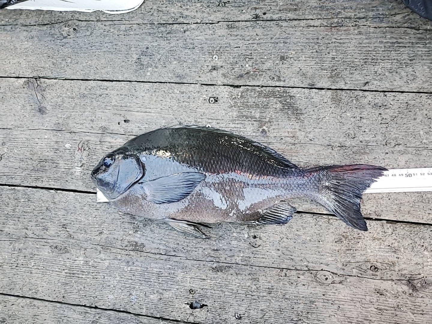 11時くらいに仕掛けがいい感じに馴染み出した時にウキが消し込み、重みのある強い引きを味わい47.5cmの口太グレを釣り上げました!!