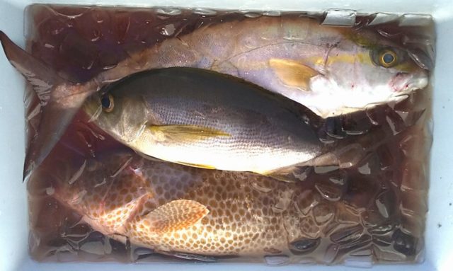 【使用タックル・当日の状況】 浅場は最近の水温低下のせいか、ベイトの付きが悪く苦戦、久しぶりのシオと大型オオモンハタが救いでした。