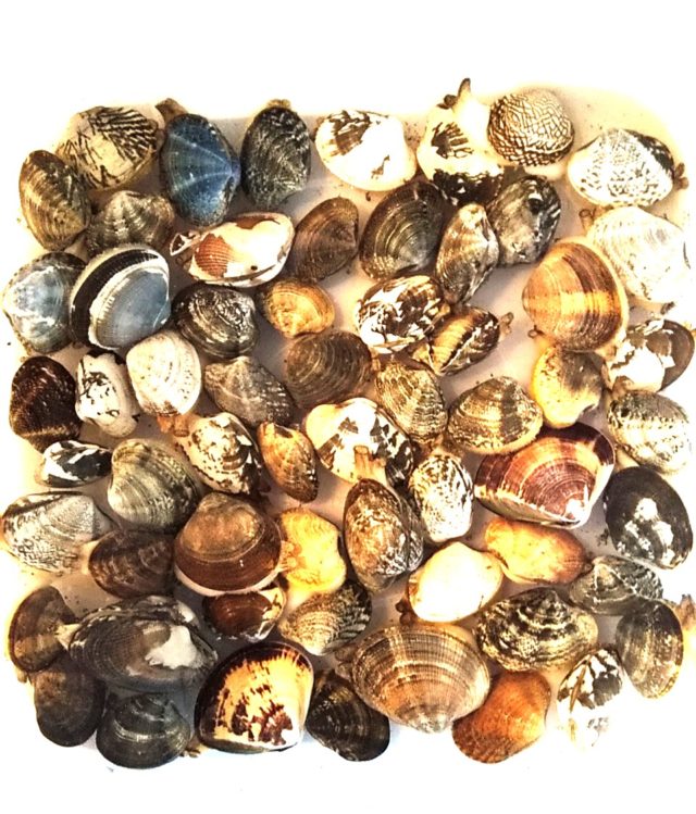 百均で買ったクマデ1つで今年初の貝掘りへ、事前情報ではアサリはほとんど取れず、ハマグリばかりとの事でしたが、 逆にハマグリは大きめ2個だけで他は全てアサリでした、場所の問題なのでしょうか?