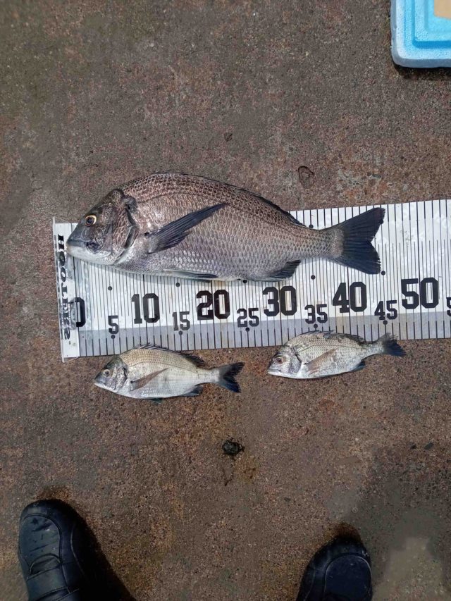 ここの所二回ぼーずがつづいていたので、今日はなんとかクロダイの顔が見たいと、思っていたので、この一匹は嬉しい一匹でした。
