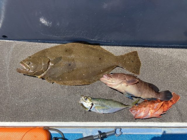 朝は雨上がりの風・波あり 昼にかけ落ち着いたが タテ釣りベイトが小さく苦戦
