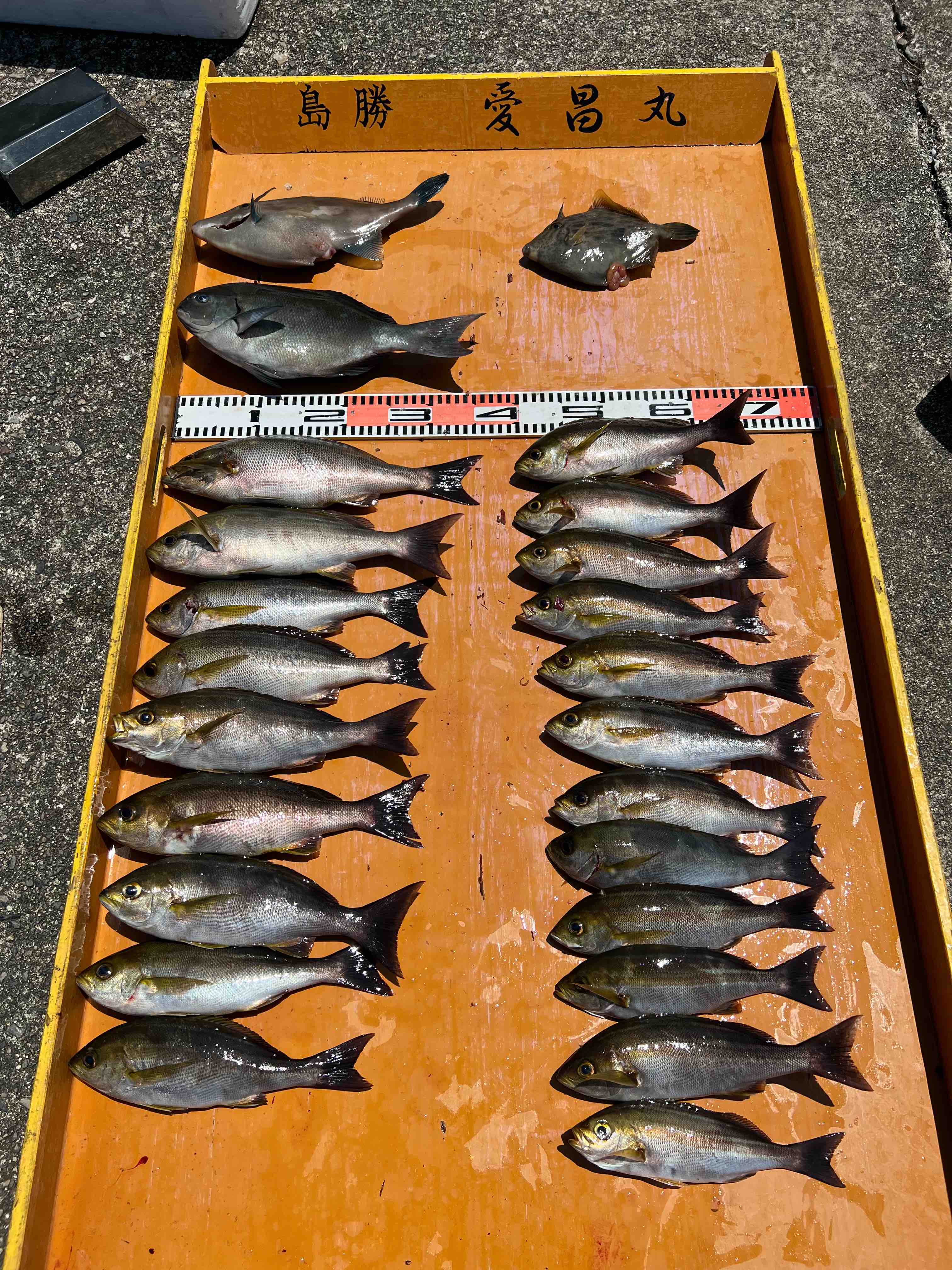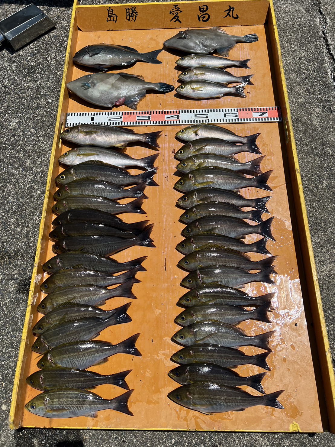 朝イチから27cm前後の良型イサキが1日ぽつぽつ釣れておまけに真鯛にウマヅラハギやウメイロ等々魚種も豊富で終わって見れば良型イサキが船中163匹と良い釣果に恵まれました\(^o^)/ 詳細はHPを御覧ください HPはコチラ ⇒ http://aishomaru.com/