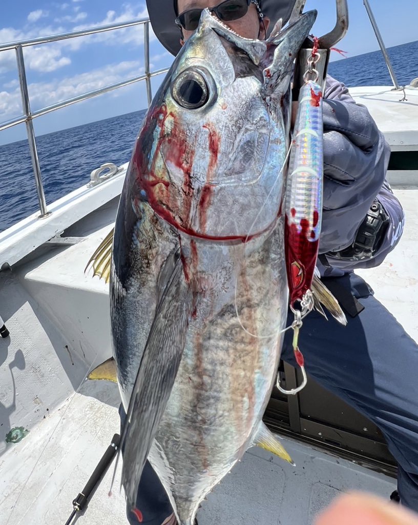 ダメ元のスロージギングにキハダマグロの幼魚がヒットしました。