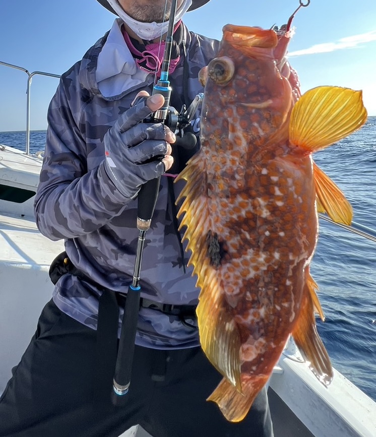 出船後40分くらいで水深30mの岩礁エリアに到着。