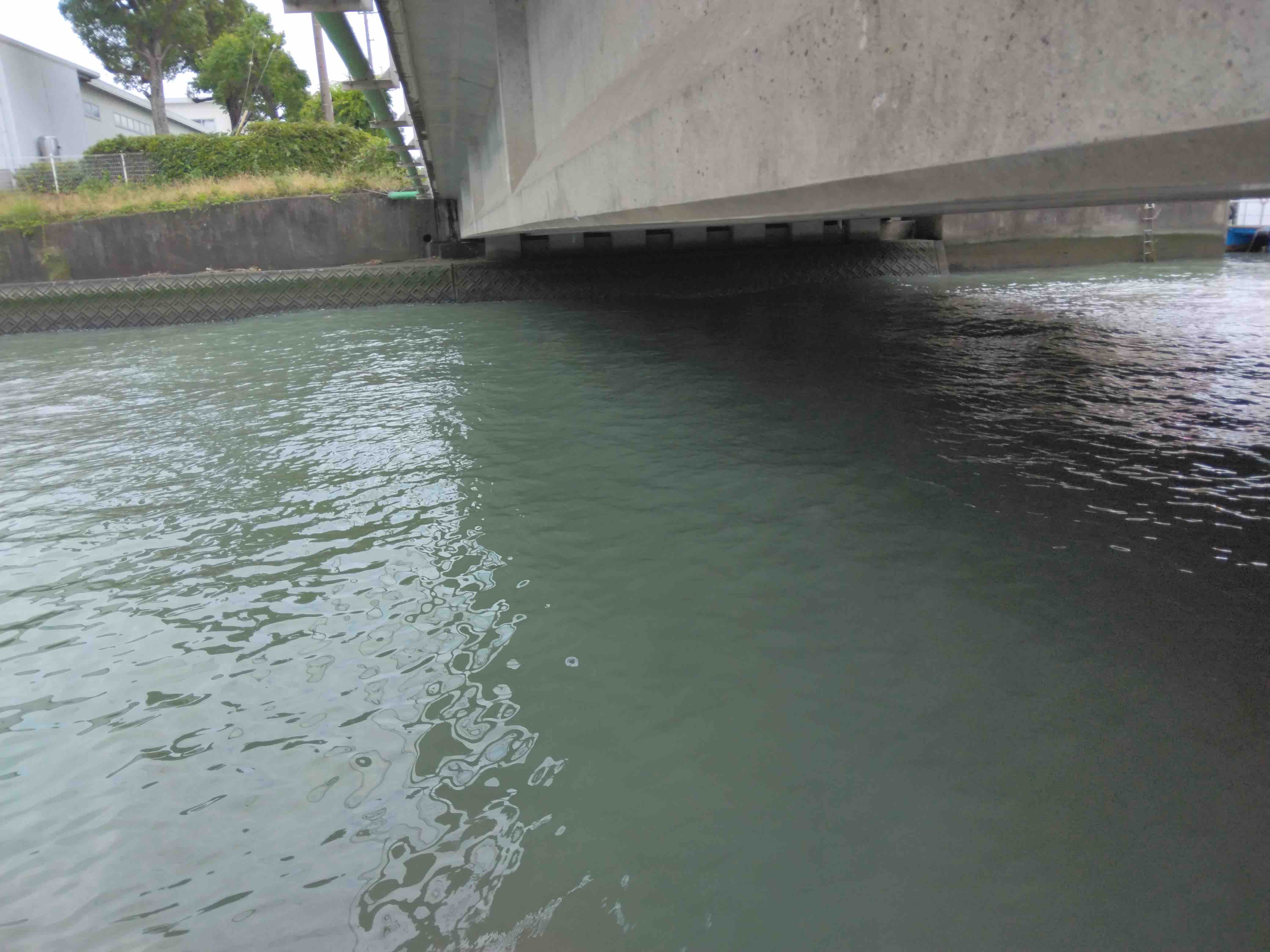 アップクロスにキャスト、スローに巻いて橋の中まで流し込み、ルアーがこちら向きになったところでヒット。