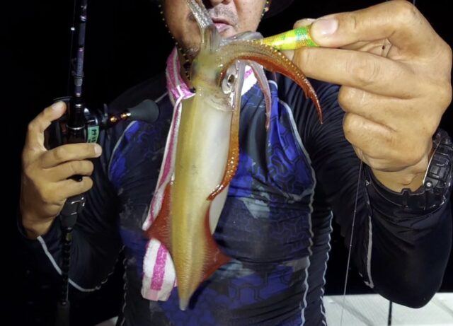 イカメタルは初挑戦です。夕方の出船後明るいうちからポツポツ釣れ始めるもののライトオン後もポツポツ釣れる感じ。