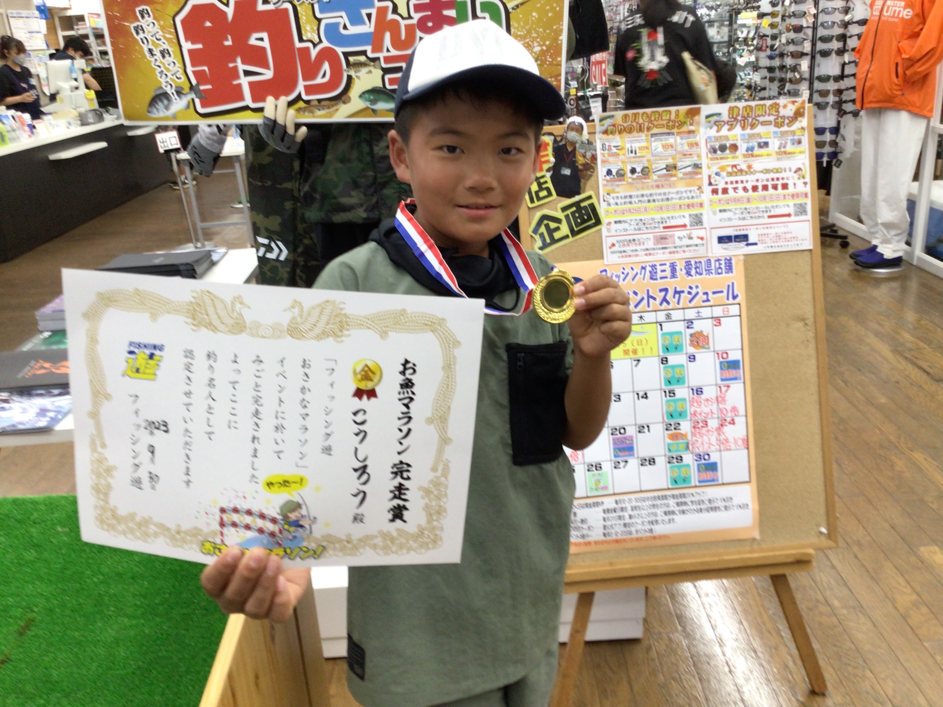 今回のお持ち込みでなんとおさかなマラソン完走!!金メダルと賞状のプレゼントです。