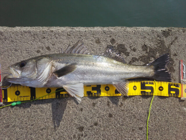 壁際ダウン早巻きにドカン。 コンディションの良い体高のある銀ピカシーバス。苦手の水深のある岸壁もセット アッパーで攻略。