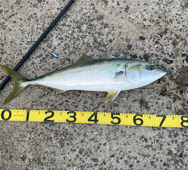 から毎日通い5日目の土曜日日没間際にナブラが湧き、アジを投げ入れたら入れ食いでした。