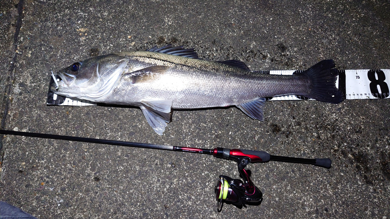 【使用タックル・当日の状況】 0.8ナイロン 月下美人#10 1.5g ガルプワームで鬼爪mサイズをつけて釣行中シーバスが釣れました。 初シーバスでした。