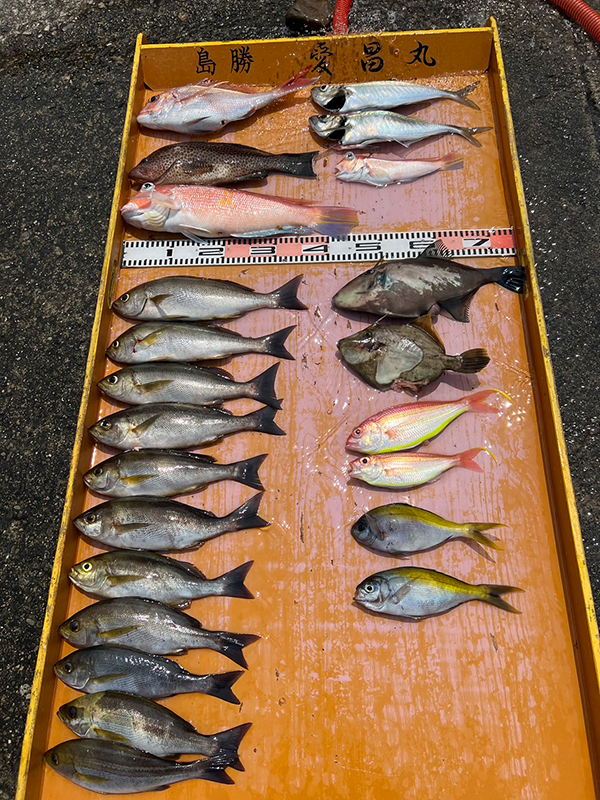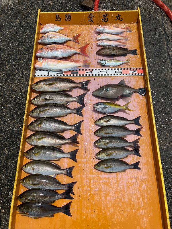 【使用タックル・当日の状況】 朝イチは小型主体でしたが、ポイントを変えて良型イサキも拾えて、深目のポイントではデカ甘鯛にデカ真鯵も追加出来ました。