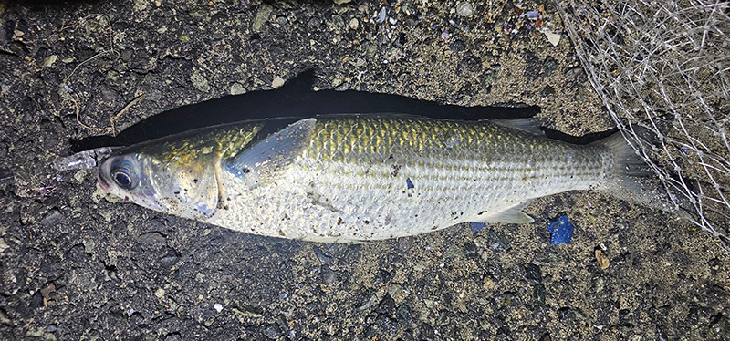 【使用タックル・当日の状況】 アジングをしに行きましたが、ボラ2匹の釣果で終わりました。その他、イソメでセイゴ、カサゴ、キス、キビレの釣果でした。