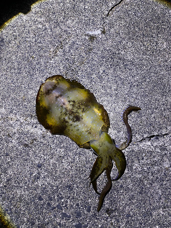 泳がせ浮き釣りで、なんとか2杯。 1杯目が釣れてすぐに2杯目。