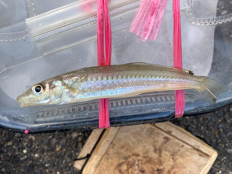 開始第一投の10秒でブルッとアタリを合わせるとキスが釣れてび