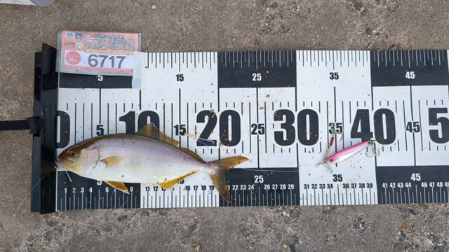 小さいですが初青物です。よく引きました! 前日の16時から当日の8時まで16時間粘ってよかったです!