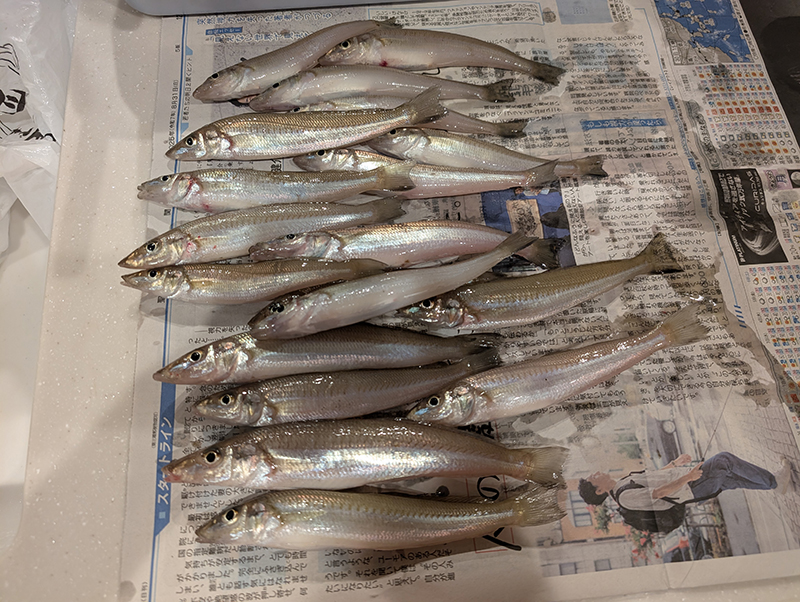 その後も15メートルラインで釣れ続け、15センチ以下リリースし、最大22センチのキスを19匹釣り上げたところでエサ切れの為、納竿。子供と夕日を眺めながら過ごす贅沢な遠征になりました