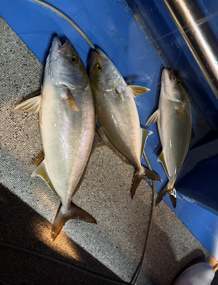 一時は3本針の仕掛けすべてに40㎝程のカンパチがかかるくらいの活性の高さでした。