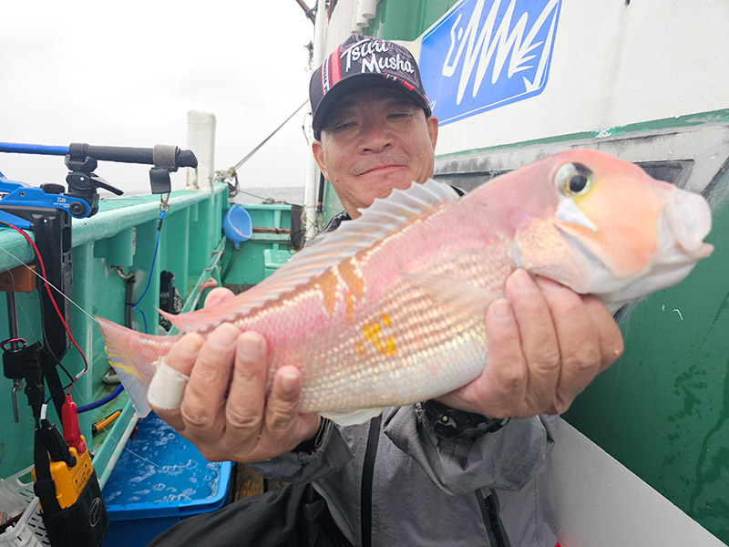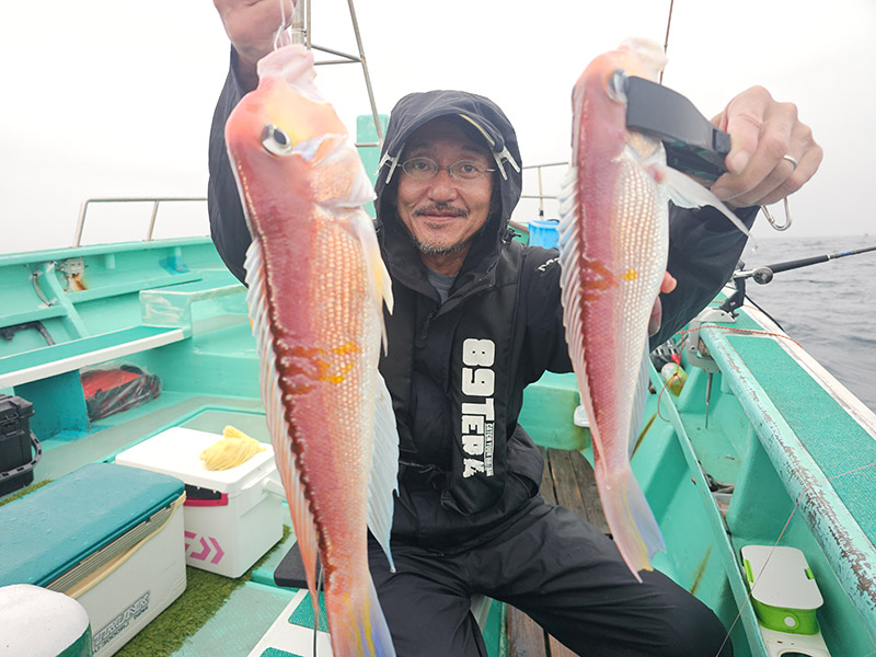 【使用タックル・当日の状況】 天秤ふかせ2本針、オモリ80号、エサはオキアミ&ホタルイカ。 6名の乗り合いで、竿頭は2名で5匹。 外道はレンコダイ、アヤメカサゴ、アジなど