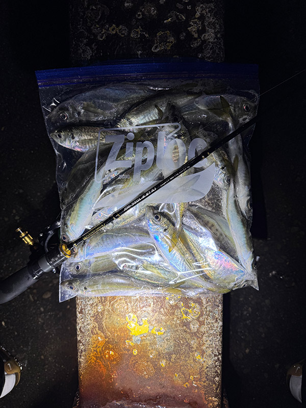 夜中アジングへ…風は強かったですが、アジの活性はよく2時間ほどで21匹釣れました!