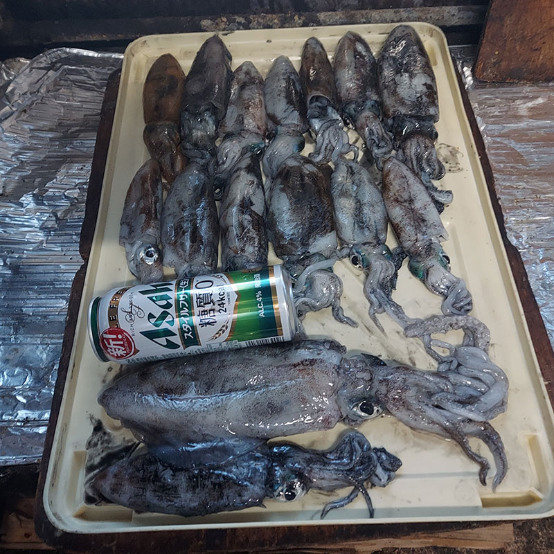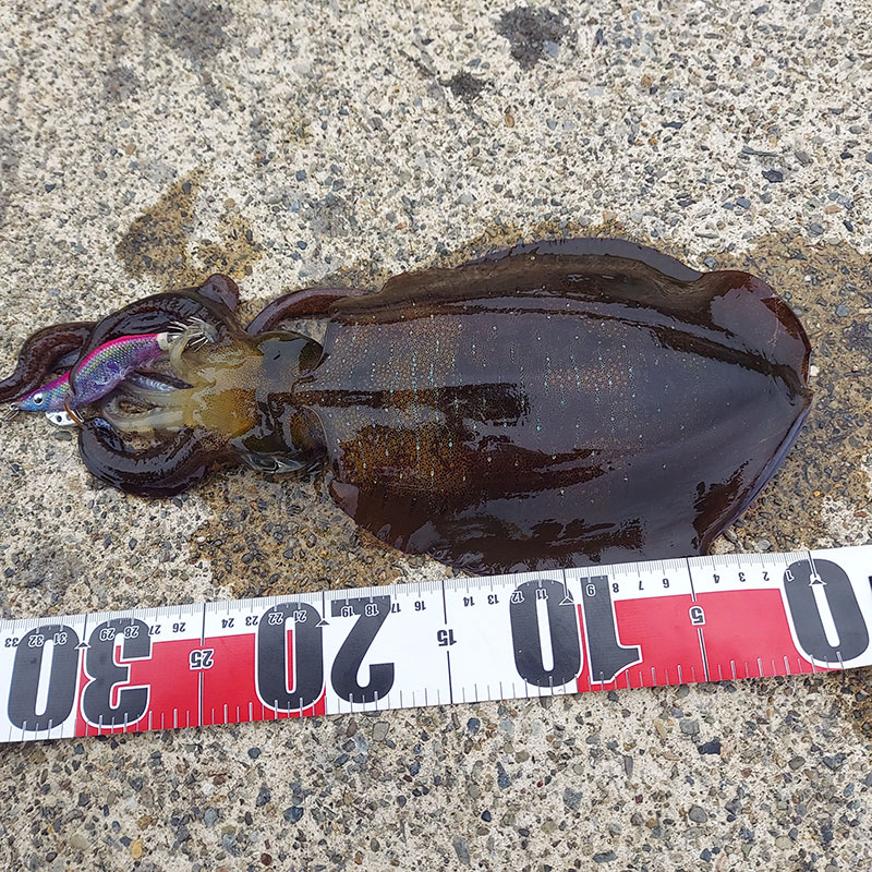【使用タックル・当日の状況】 セフィアBB S86 M エメラルダス エメラルダスLT―2500DH ベタ凪、一時入れ食い状態、 エギに掛かったアオリイカに大きなアオリイカがアタックして来ました。 更に竿下で近くのヤエン釣りのアジに乗ってるアオリイカに三杯寄って来て、 その内一杯にエギを入れたら一発で乗ったのが本日一番でした。