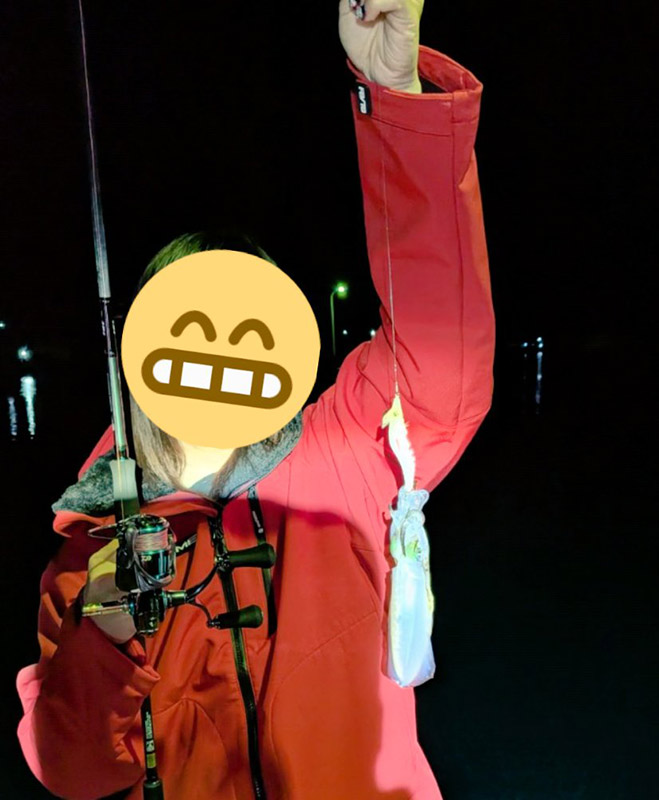 初めてのアオリイカの引き、アオリイカの体表の色が変わるのに感動~(´0`)