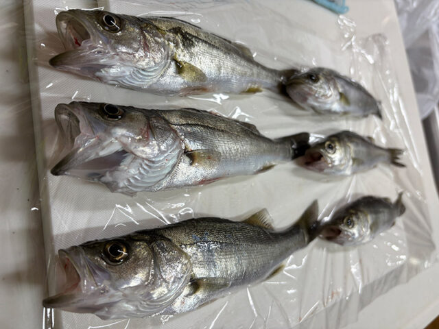 ぶっ込みには持ち帰りサイズの6匹のセイゴ エサは青イソメ