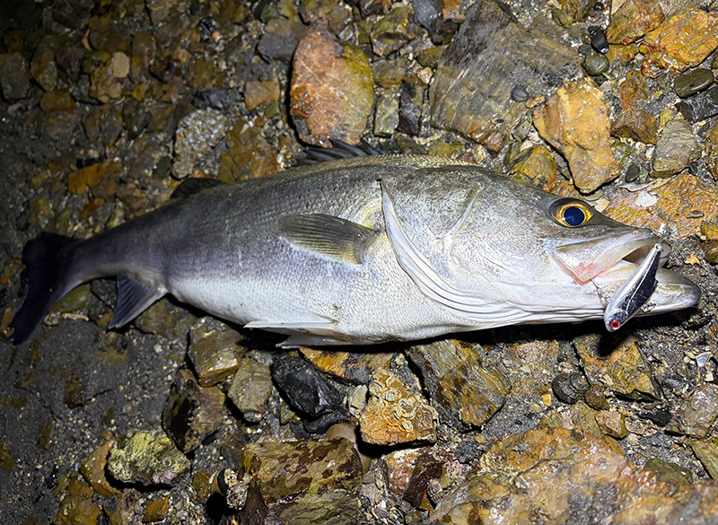 イワシやサッパが入るとフラッシング系、特にメッキカラーに良く反応するようで開始直後から60アップのシーバス2匹キャッチ。