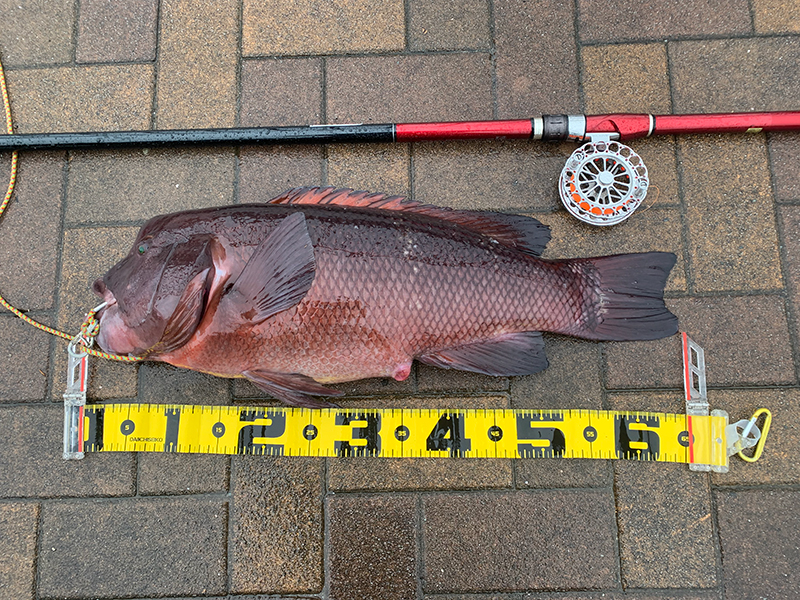 6mの竿で根廻りを逃げて何とか取り込みました。余りにひきが強く、重いので竿がバットから曲がったのですが、折れずに耐えてくれました。
