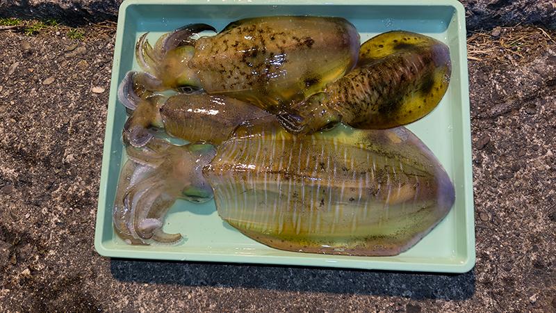 【使用タックル・当日の状況】 3mの磯竿にシマノナビ2500Lスピニングリール イダコヤエンで掛けました