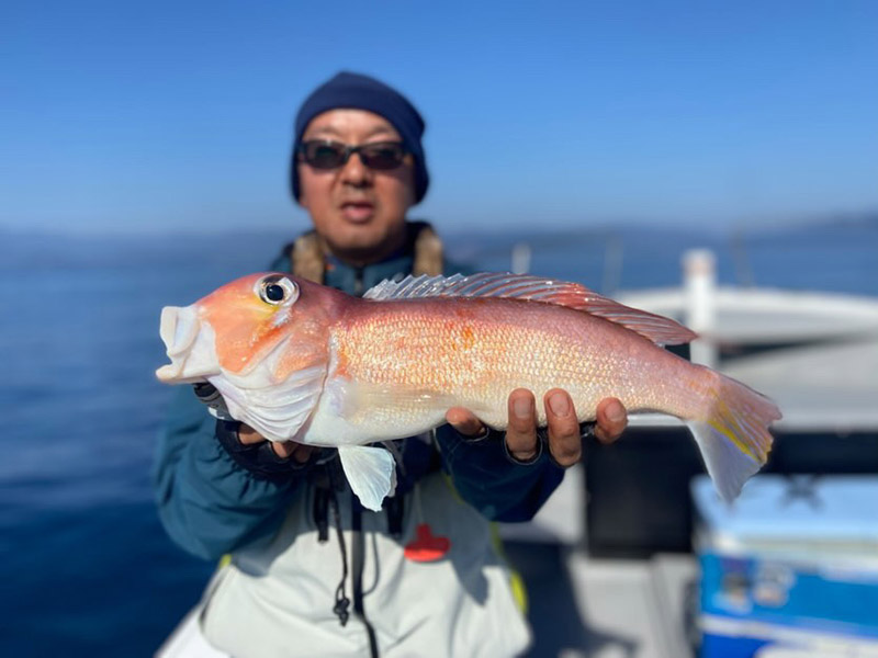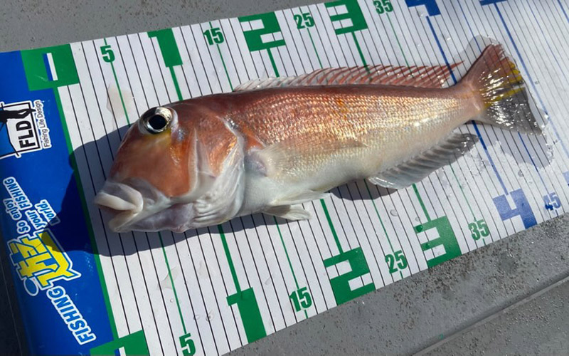 初めての釣りに最初は苦戦しましたが船長のアドバイスによりコツを掴んだら本命アマダイが釣れました。