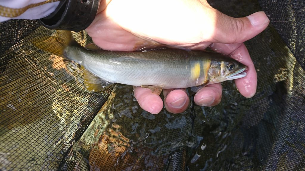水温が上がってきた為、11時頃から一気に釣り下るも全く数を伸ばせず3時間で5匹。同行者は午前中5匹と苦戦していましたが、水温が上がってきてからは水深のあるポイント攻め良いサイズを連発。隣で釣らせてもらうも私はなかなか掛けることができず時速1匹ペース・・・夕方から流れのあるポイントに移動するも掛けることができず納竿となりました。最終釣果は23匹。サイズは12㎝~18㎝くらいまで。