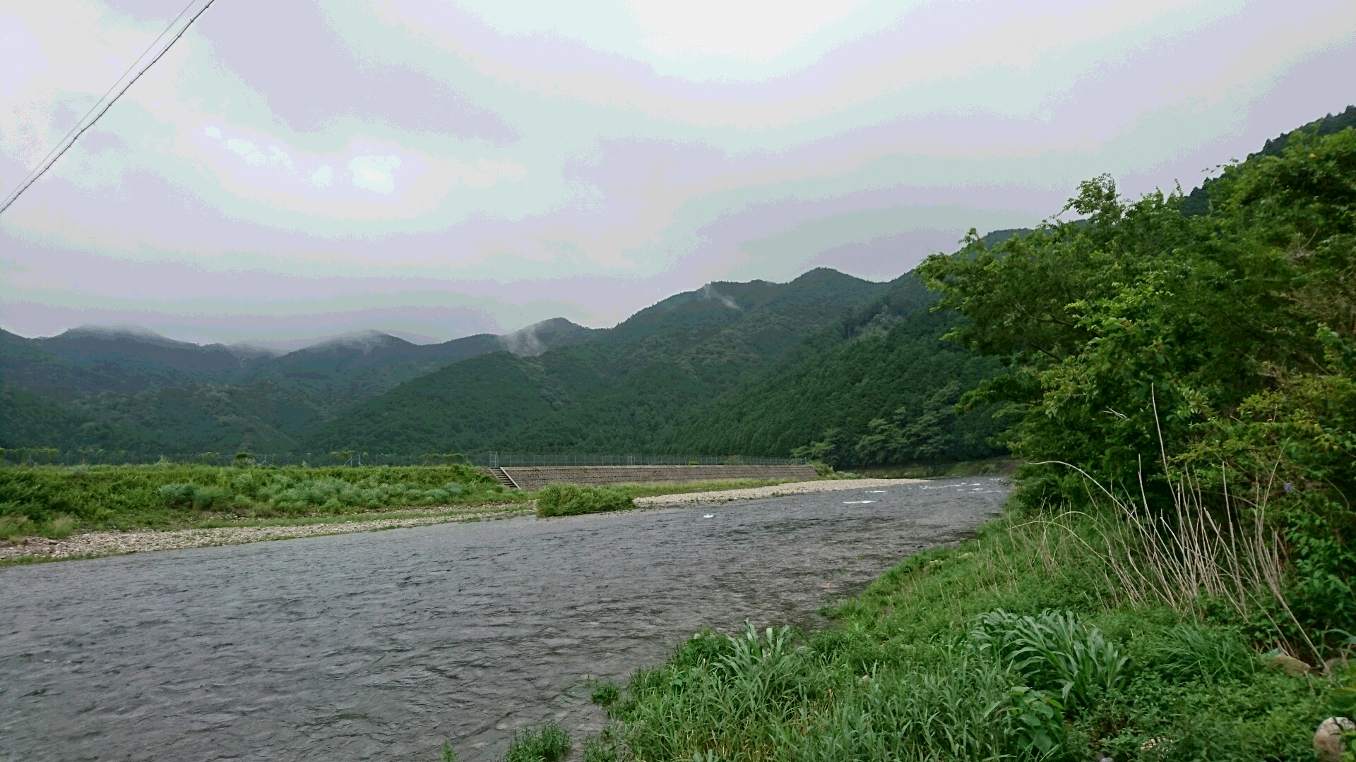 どこの河川も大増水ですが、三重県大内山川はほとんど影響なしで平水より10~20cm水が高い程度です。