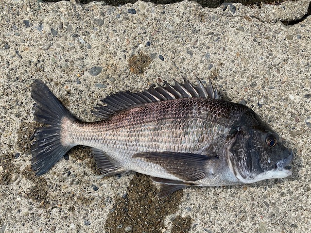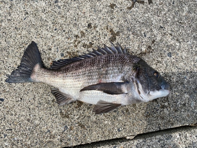 おなかパンパンとは行きませんが47Cmぐらいのチヌです。